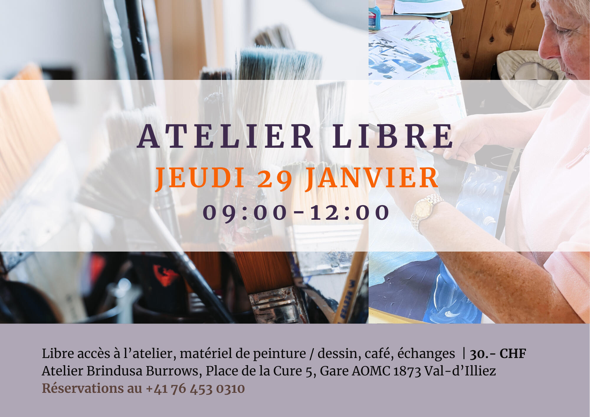 Libre accès à l’atelier, matériel de peinture / dessin, café, échangesPrix 30.- CHF