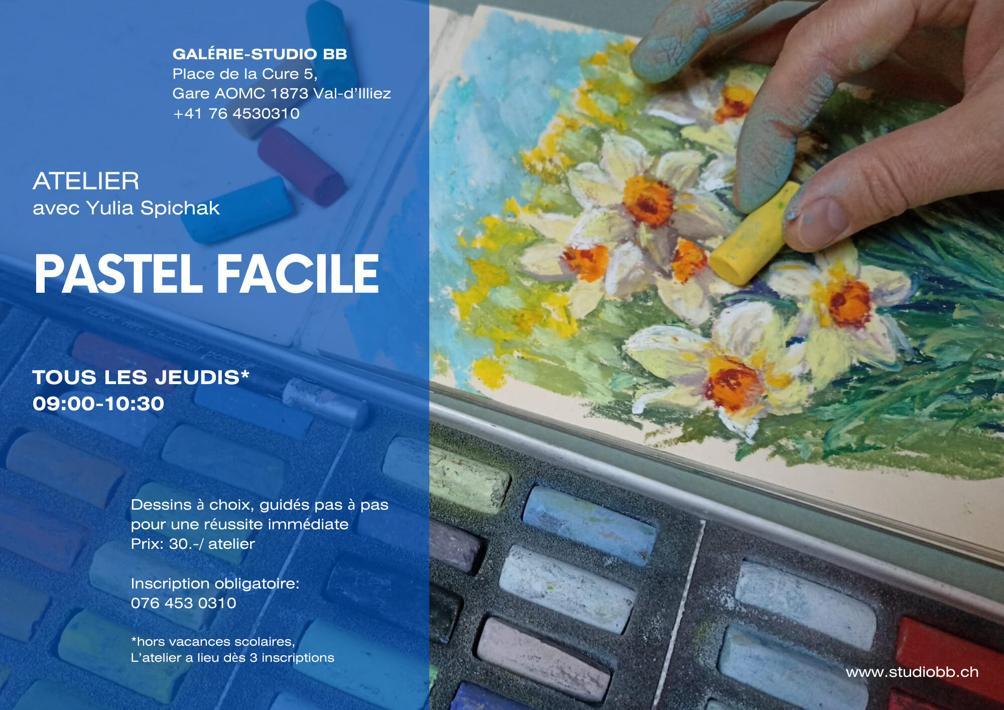 L’artiste Yulia Spichak, pastelliste de la Vallée d’Illiez, revient au StudioBB pour proposer un atelier de pastel facile.